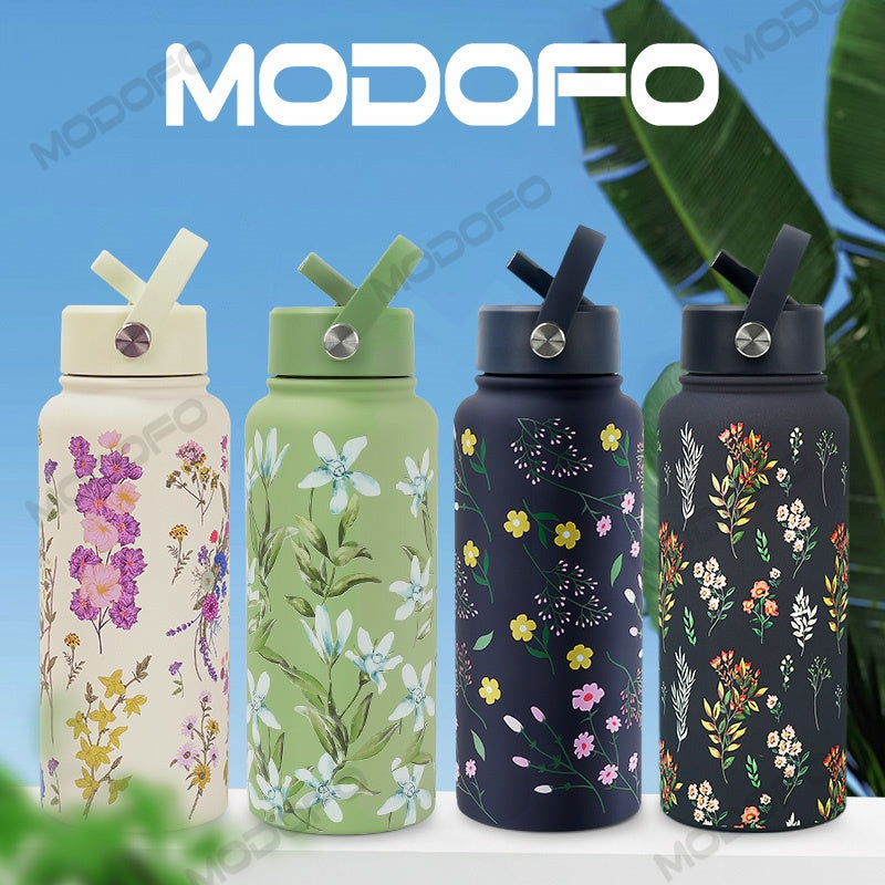 ✔️ MODOFO 1000ML Thermos Bottle with Straw (Flower Series Only)