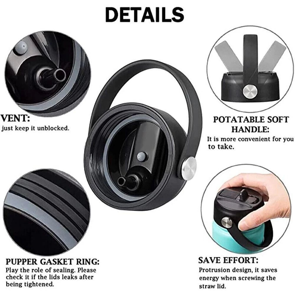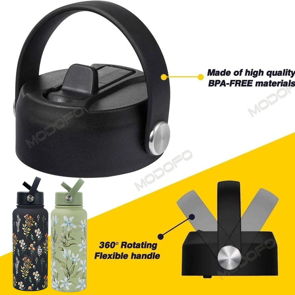 MODOFO Solid Color Insulated Bottle Cap with Straw - Compatible with Various Bottles 1000ml & 18oz
